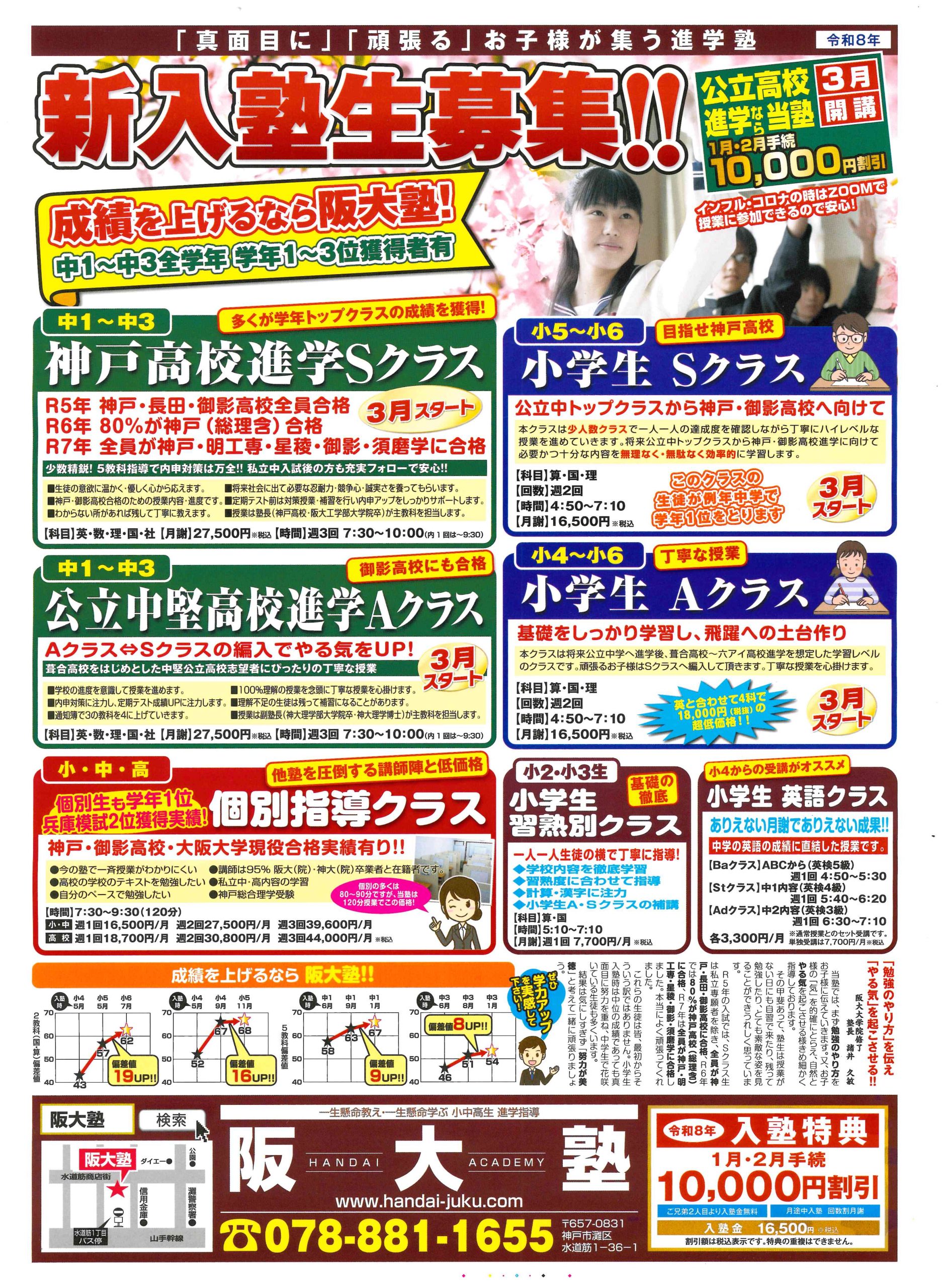 阪大塾は、平成3年から神戸市灘区で開講している進学塾・個別指導塾です。